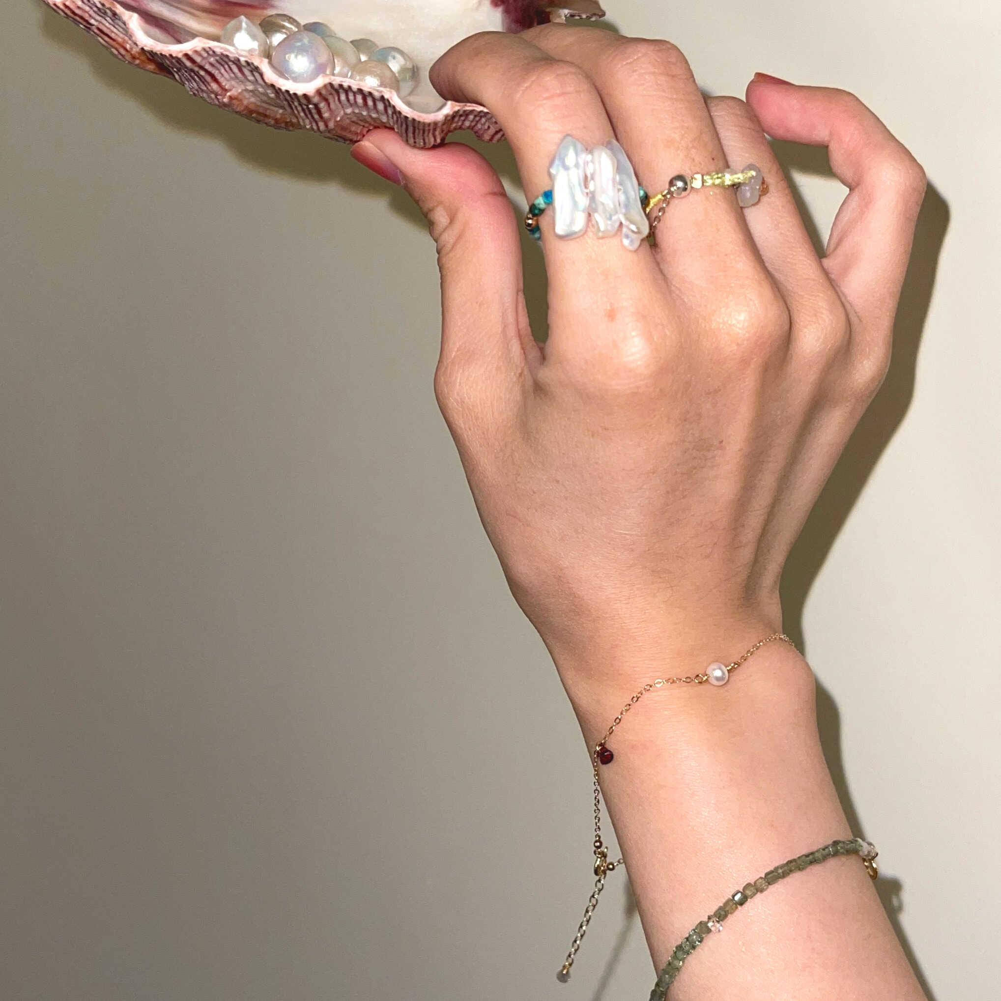 The FOREST Ring embodies the untamed beauty and vitality of a forest. Handcrafted with handpicked Chrysocolla gemstones, AAA-grade lustrous baroque pearls, and delicate Czech beads, this 14K gold-filled elastic ring captures light and energy with every movement. Inspired by nature’s freedom, it symbolizes courage, growth, and personal empowerment, making it a meaningful accessory for any wearer.